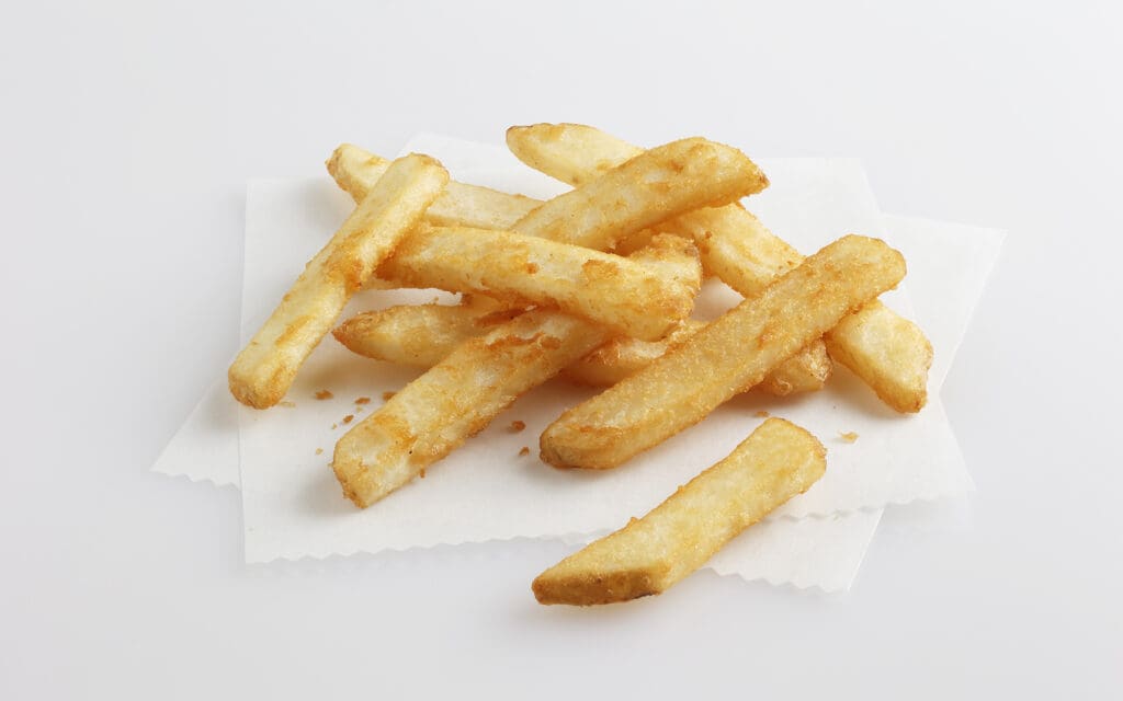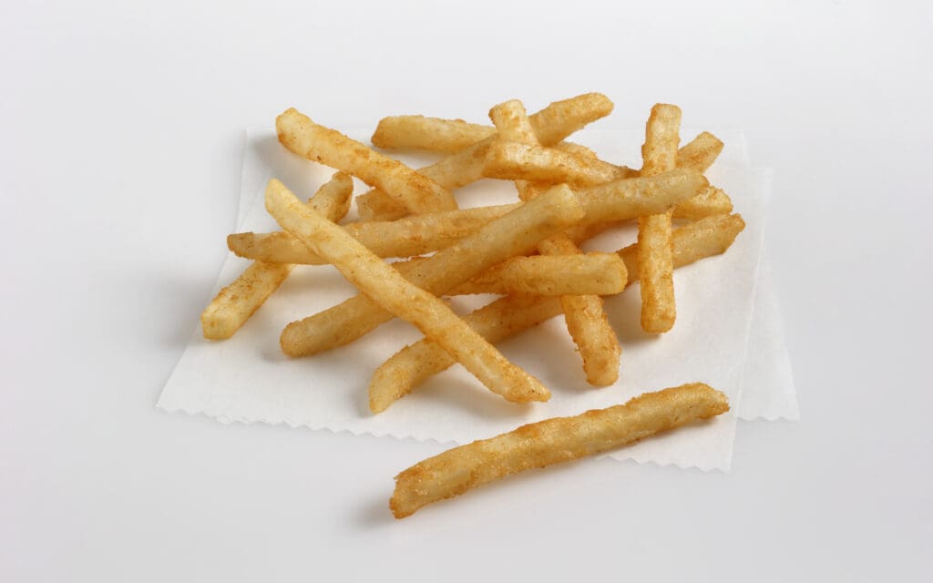 Select prime Pacific Northwest potatoes are cut to 1/4″ x 1/2″ and coated with our exclusive microbrew-flavored coating for extra crisp and crunchy fries, so they maintain their flavor and stay hot and crisp longer than conventional fries.