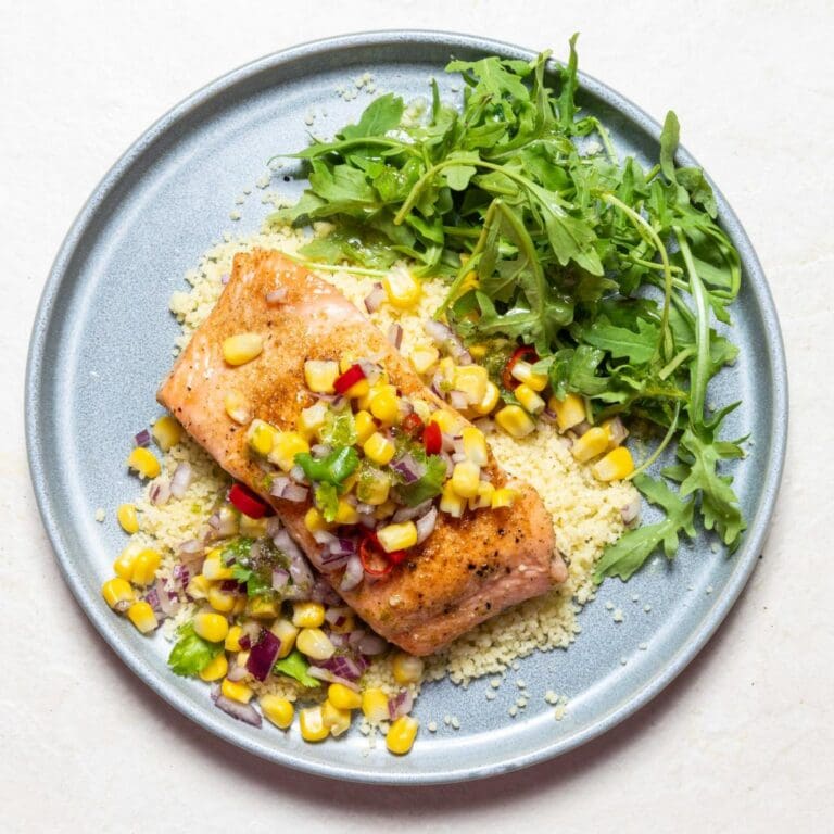 Seared Salmon with Sweetcorn Salsa & Lime Dressing